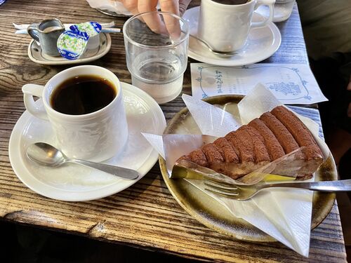 緊急招集された八千代東高のプチ同窓会ですが、海鮮居酒屋ランチでは語り足らず、京成津田沼の老舗喫茶店「珈琲屋からす」でケーキセットを食べました。