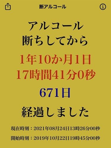 断酒一年十ヶ月達成しました。(断酒一年九ヶ月はすっかり忘れおりました)