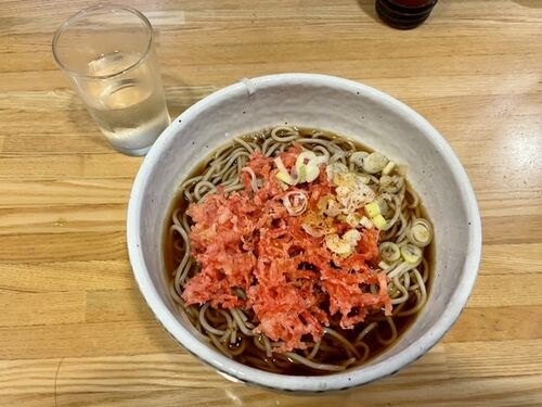 今日も冷たい雨の中をカッパを着てPCXで走って身体が冷え切りました。今日も温かい蕎麦を食べたくて人形町福そばで紅生姜天そばを大盛で頂きました。